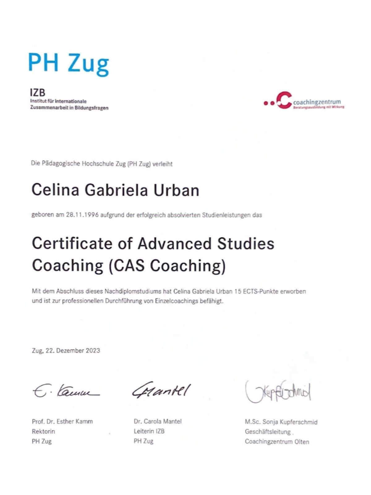 Als Begleitungsperson nehme ich primär die Rolle als Coach ein und biete Hilfe zur Selbsthilfe. Je nach Bedarf und Wunsch übernehme ich situativ auch die Rolle der Beraterin oder Trainerin, um meine Kund:innen optimal in ihrer Entwicklung zu unterstützen.