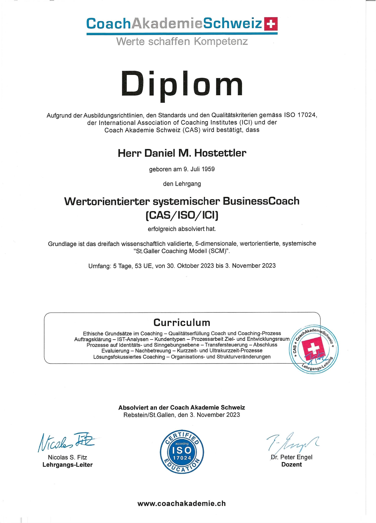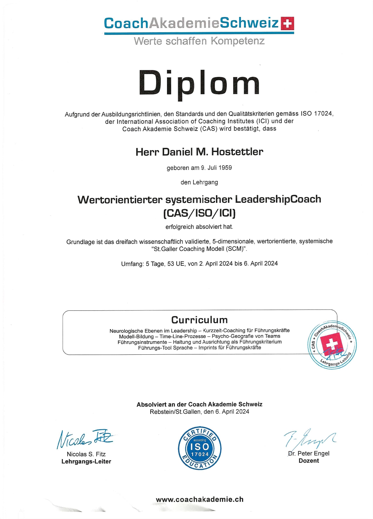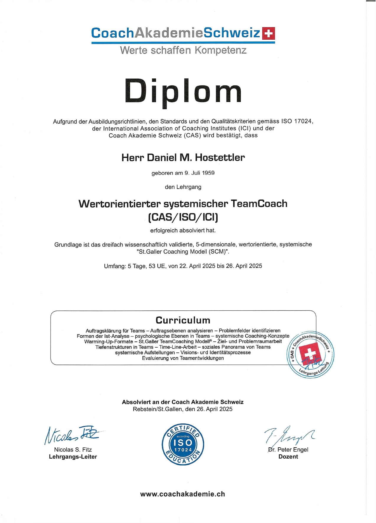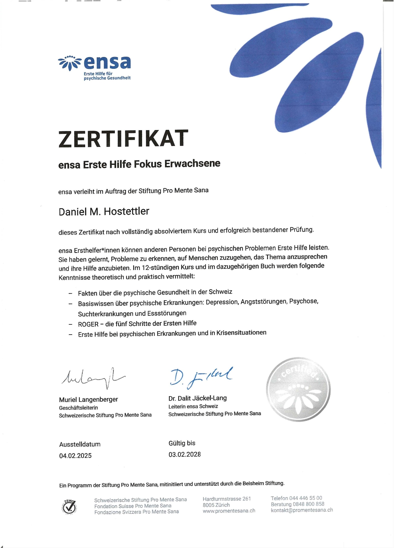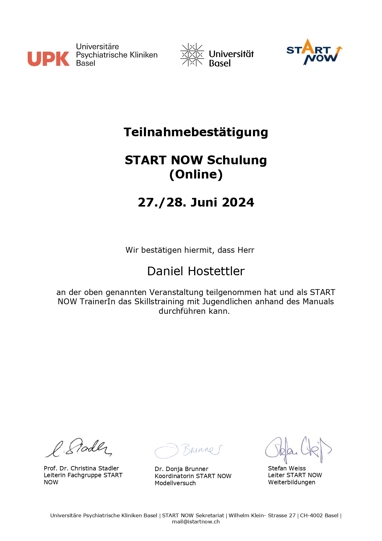 Nachricht an Daniel Hostettler