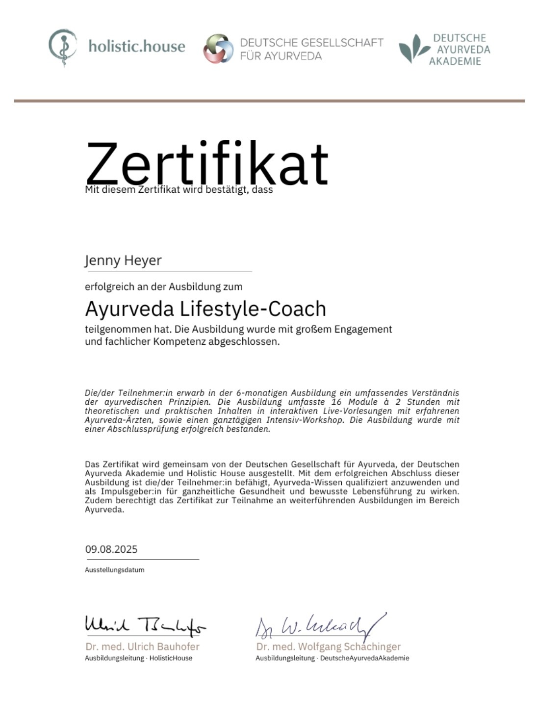 Hi, ich bin Jenny — zertifizierter European Business Coach, BECOMINGME YOGA® Teacher, Ayurveda Coach und Gründerin von THE ENERGY CODE®.